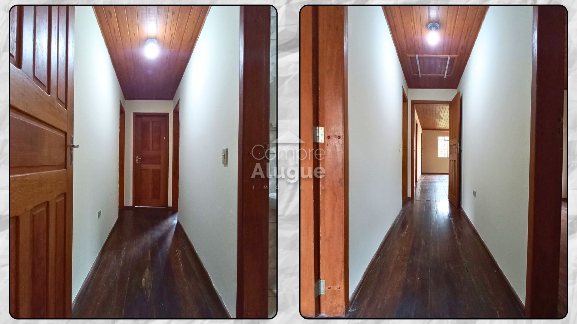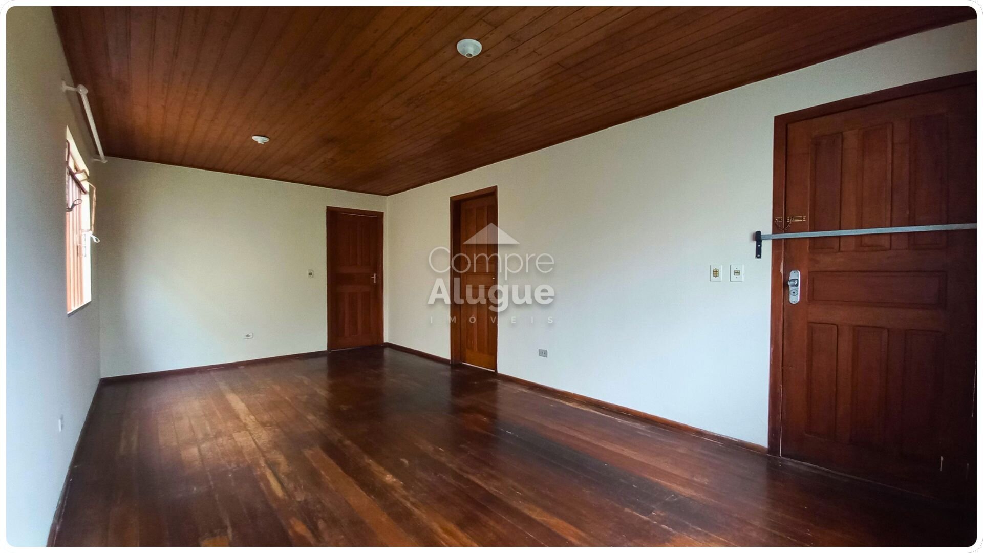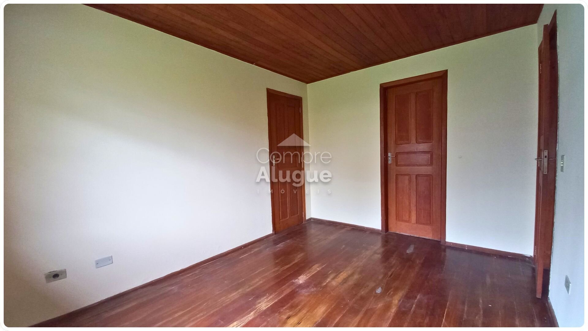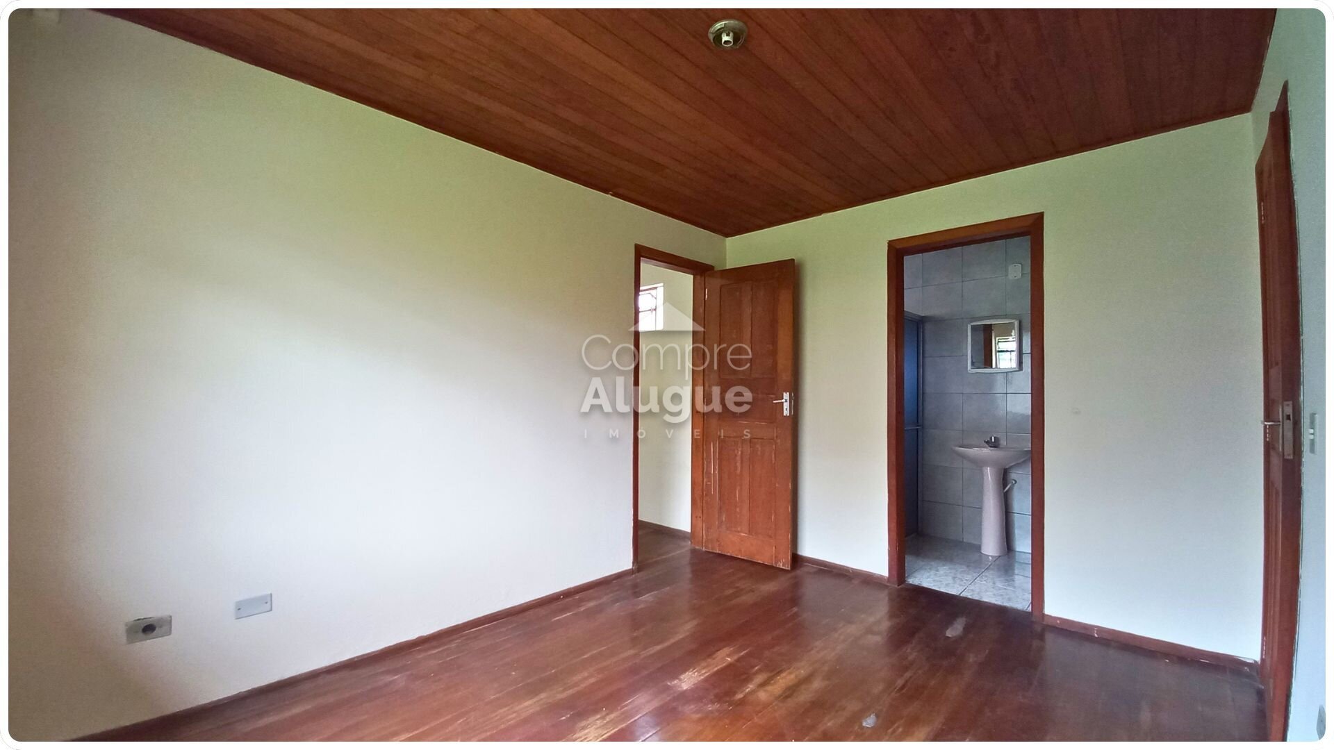 Um ponto a considerar é o piso em tábuas de madeira, que apresenta desgaste natural. Por outro lado, isso abre espaço para personalização estética ou revitalização, permitindo adequar o imóvel ao seu estilo.