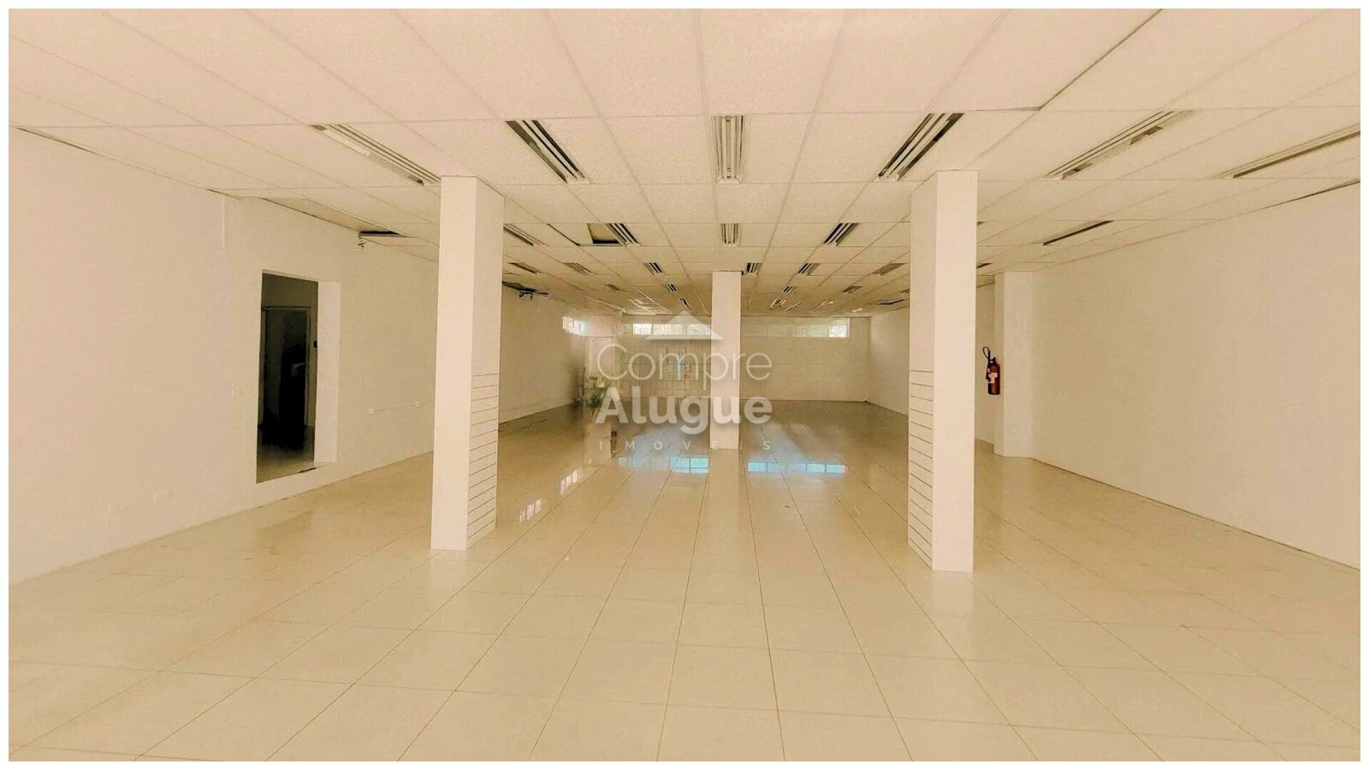 Apenas 3 colunas retangulares de sustentação, permitindo layout flexível e máximo aproveitamento da área de vendas, exposição ou uso operacional.