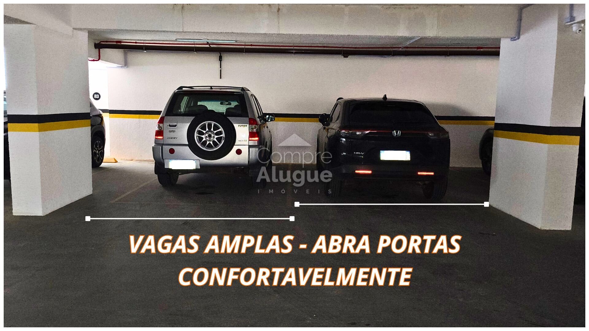 As vagas de garagem, cobertas e livres, são amplas para facilitar o acesso do veículo bem como a abertura das portas. Confira na foto.